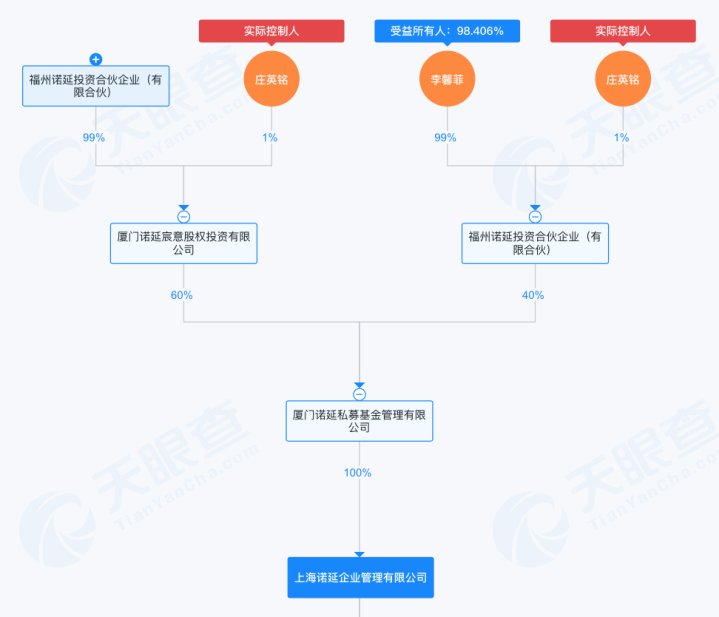 梳理各方线索可见,最初启动收购SHM的是诺延企管,根据天眼查股权结构穿透信息可知,掌舵诺延企管的,是自然人庄英铭和李馨菲。上述的厦门诺延同样由庄英铭和李馨菲控制。
