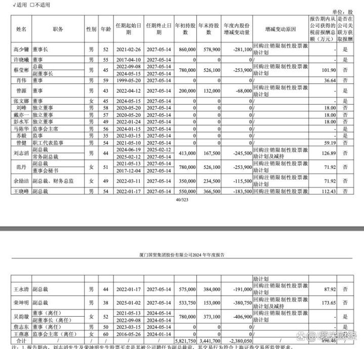 2024年年报显示,公司董事、监事和高级管理人员2024年报酬总额896.46万元。董事长高少镛2024年从公司获得的税前报酬总额为0,在公司关联方获取报酬。总裁、副董事长蔡莹彬2024年从公司获得的税前报酬总额为101.90万元,未在公司关联方获取报酬。副总经理、董事会秘书范丹2024年从公司获得的税前报酬总额为71.92万元,未在公司关联方获取报酬。